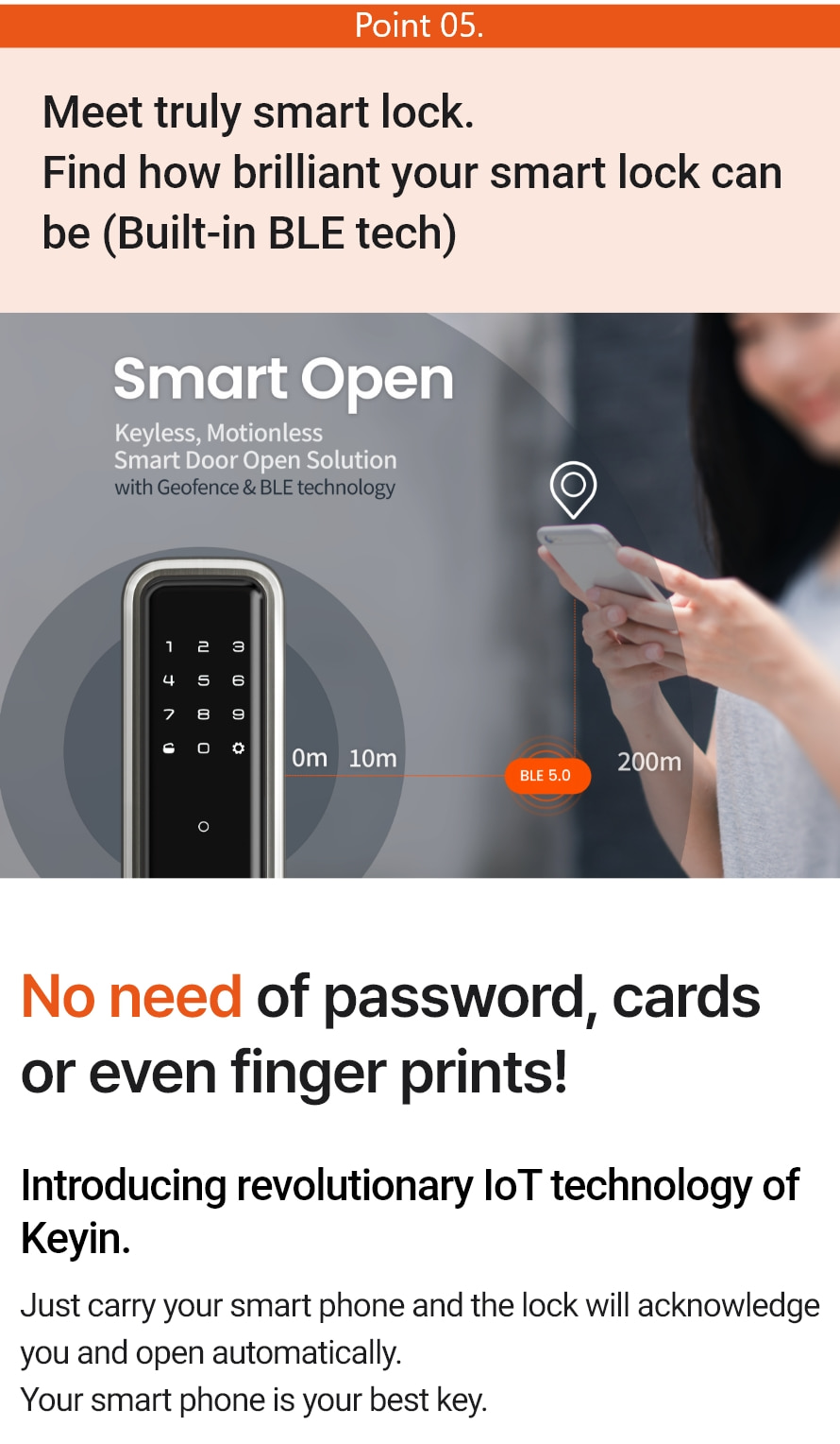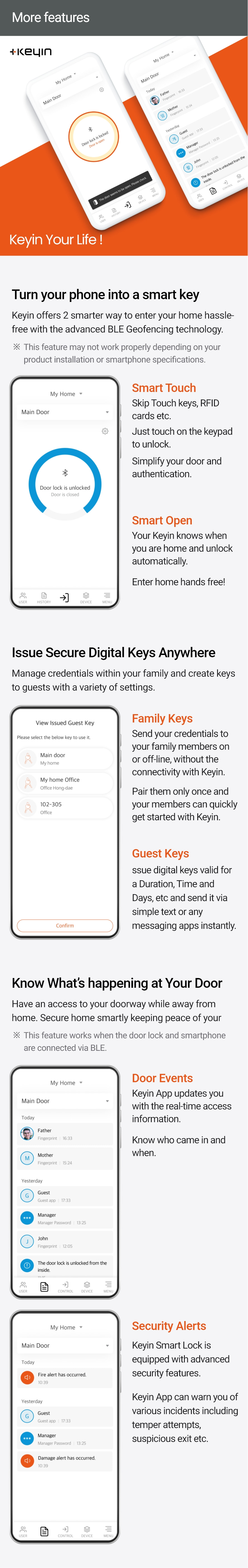 Keyin L smart door locks provide keyless entries using a mobile app, fingerprint recognition, and password system. The stylish design improves the security and convenience of modern life.