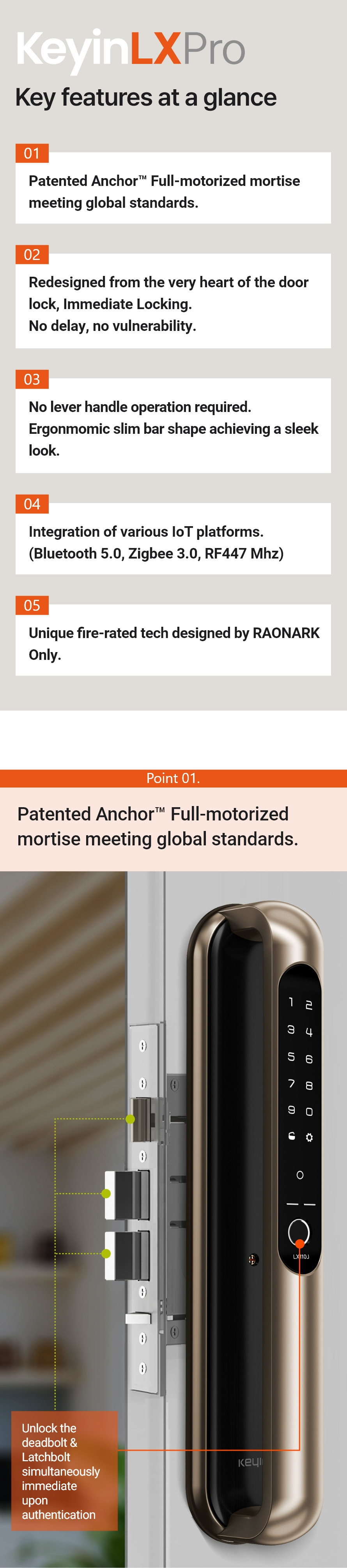 The Keyin LX door lock goes a step further than instant locking by featuring a perfect, most intuitive bar-shaped design. It is a true smart door lock that allows for IoT connectivity and facial recognition expansion to suit customer preferences even after initial installation.