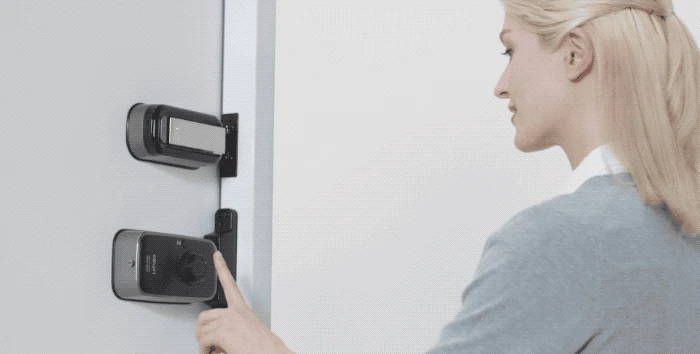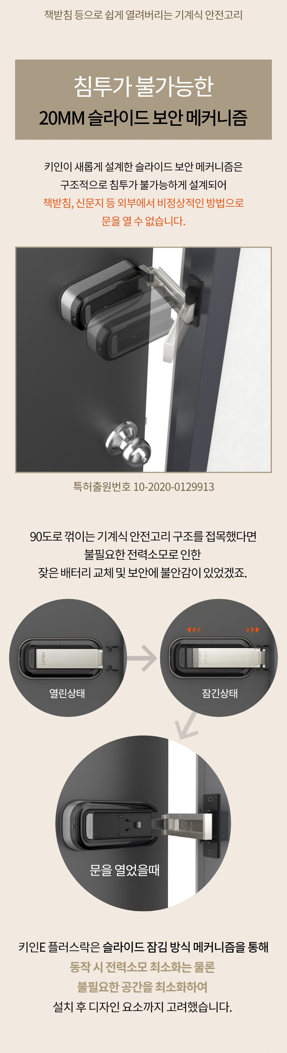 Keyin E 도어 잠금장치는 추가 보안을 위해 내부 이중 잠금 시스템을 갖추고 있습니다. 지문, 비밀번호 및 앱 제어를 지원하며, 세련된 디자인과 비상용 기계식 키로 안전성을 더했습니다.