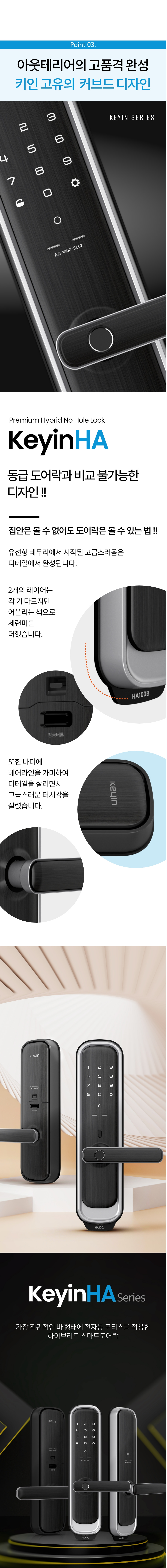 Keyin HA 도어록은 별도의 구멍을 뚫을 필요 없이 기본 홀 하나만으로 설치가 가능하면서도 기능과 크기는 프리미엄 가치를 유지하는 키인만의 하이브리드 무타공 도어락을 사용해보세요.
