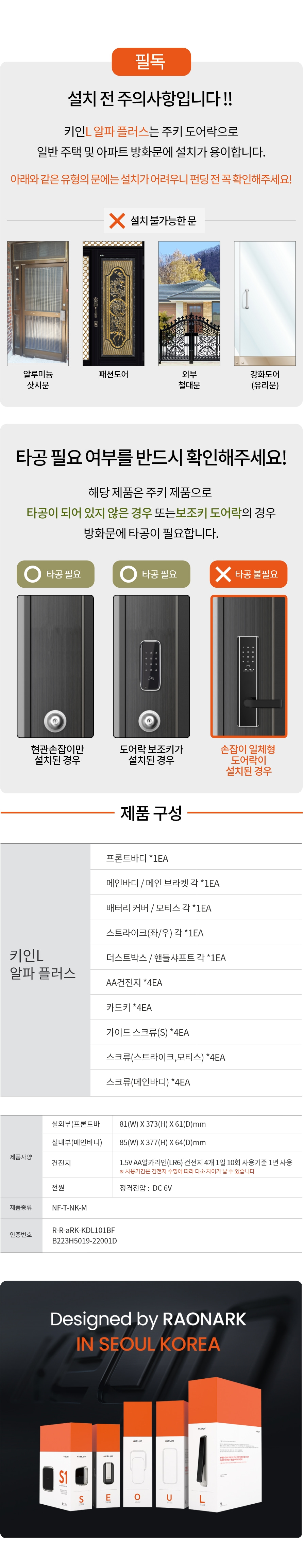 ( 문 상태에 따라, 설치하실 문의 바깥, 안쪽, 측면 프레임 3컷의 사진이 필요함 )