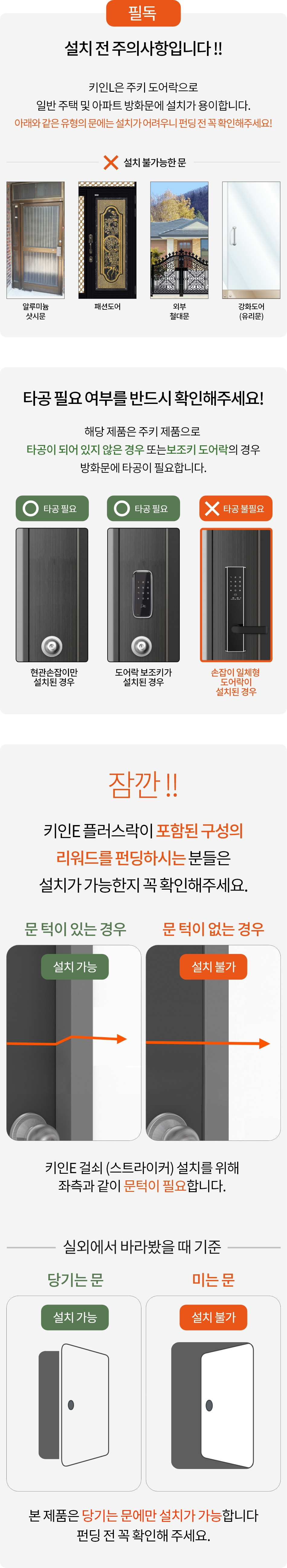 ( 문 상태에 따라, 설치하실 문의 바깥, 안쪽, 측면 프레임 3컷의 사진이 필요함 )