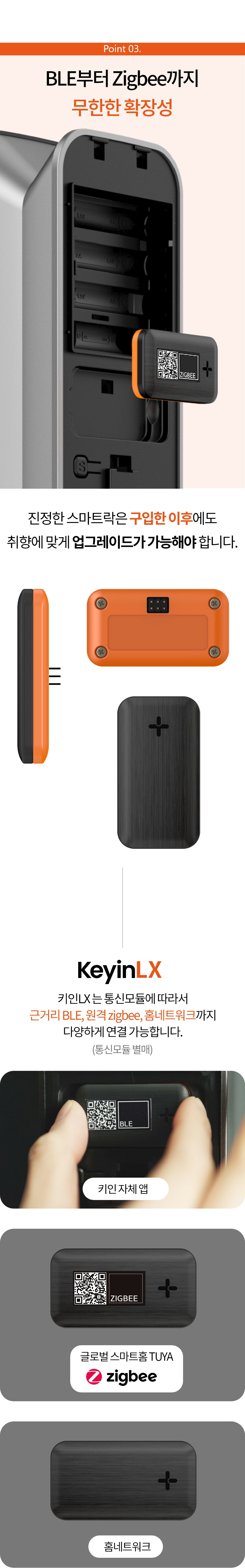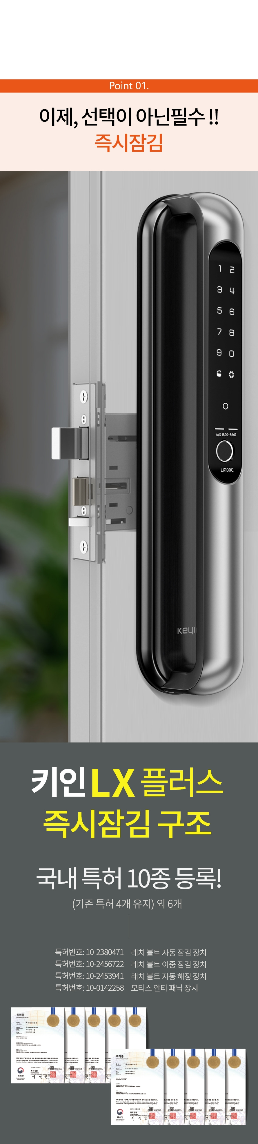Keyin LX 도어록은 즉시잠김에서 한발짝 더 나아가서 가장 직관적인 바 형태의 완벽한 디자인을 적용하였습니다. 한번 설치한 이후에도 고객의 취향에 맞춰 IoT 연결, 안면인식 확장이 가능한 진정한 스마트도어락입니다.