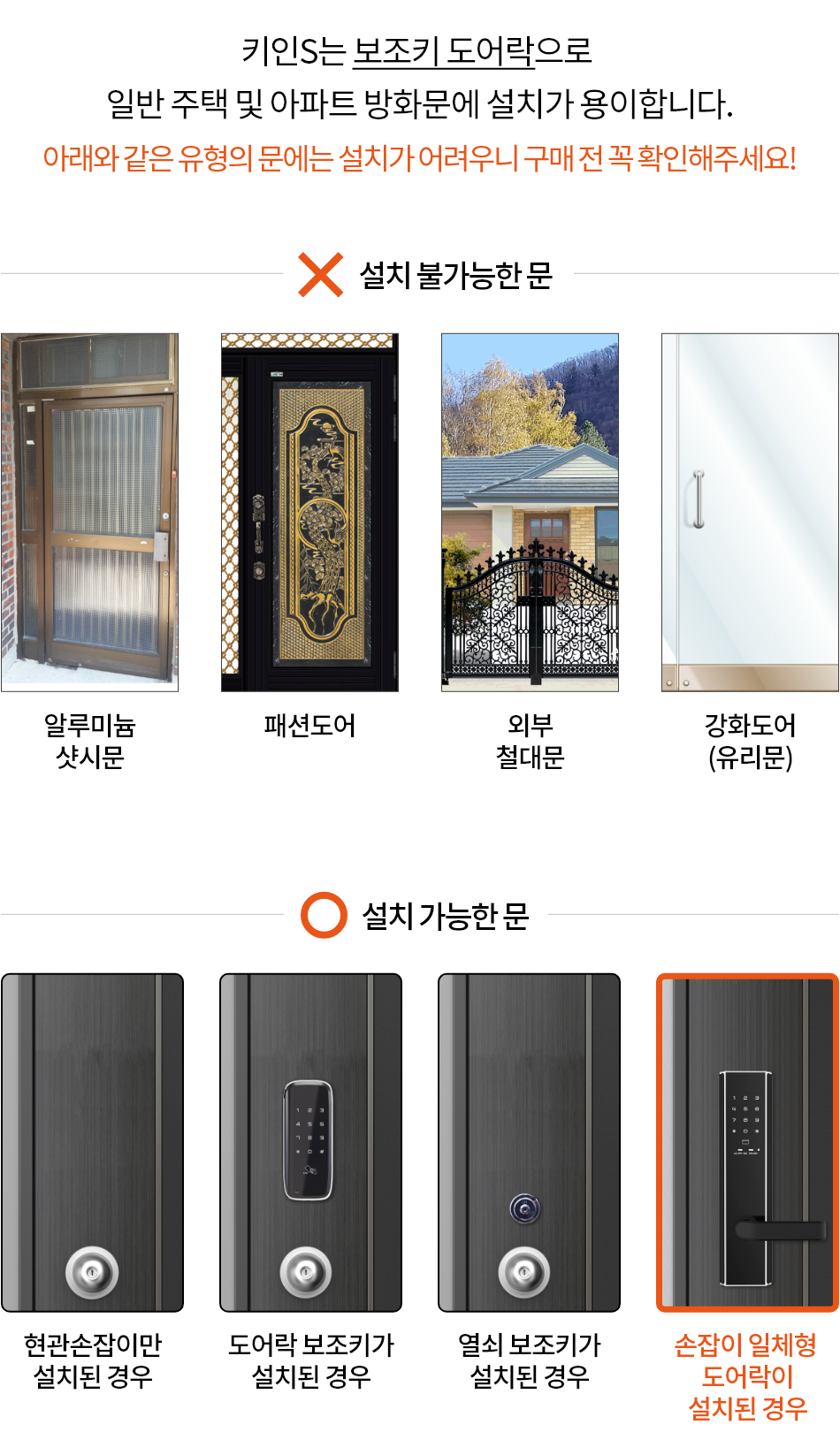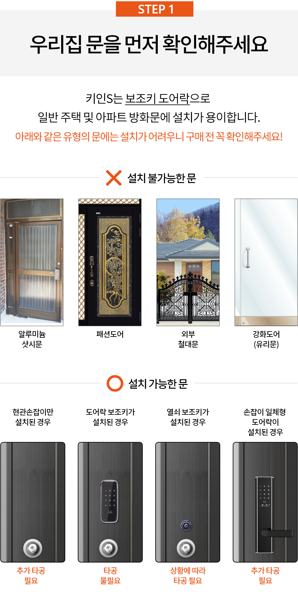 ( 문 상태에 따라, 설치하실 문의 바깥, 안쪽, 측면 프레임 3컷의 사진이 필요함 )