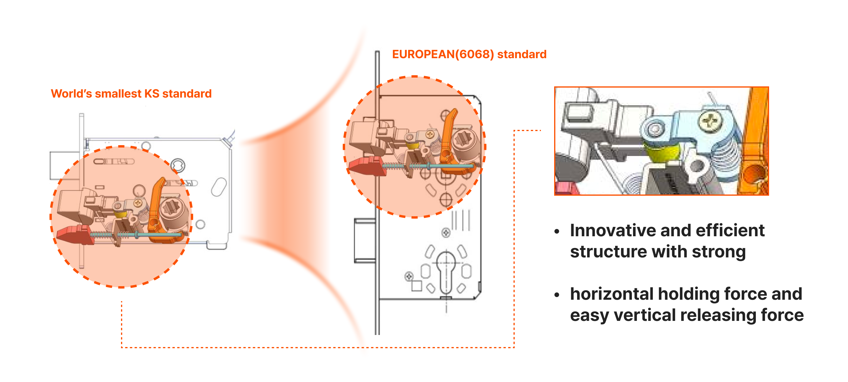 따라서 방탄 도어와 같은 두껍고 무거운 도어에 설치하더라도 경쟁사의 모티스 락에