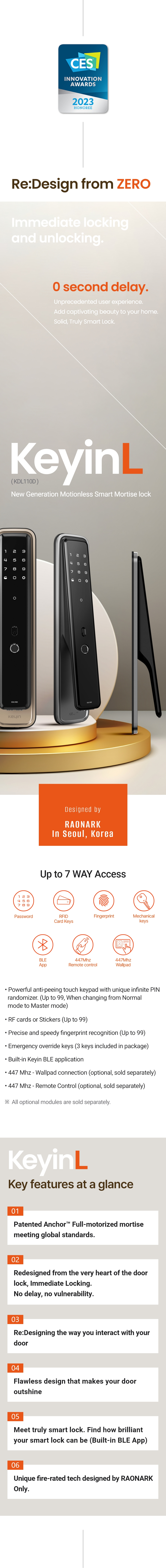 Keyin L smart door locks provide keyless entries using a mobile app, fingerprint recognition, and password system. The stylish design improves the security and convenience of modern life.