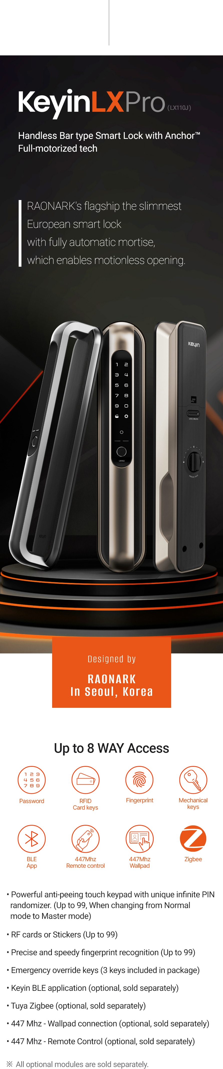 The Keyin LX door lock goes a step further than instant locking by featuring a perfect, most intuitive bar-shaped design. It is a true smart door lock that allows for IoT connectivity and facial recognition expansion to suit customer preferences even after initial installation.