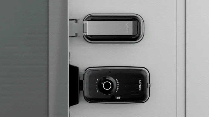 Keyin E 도어 잠금장치는 추가 보안을 위해 내부 이중 잠금 시스템을 갖추고 있습니다. 지문, 비밀번호 및 앱 제어를 지원하며, 세련된 디자인과 비상용 기계식 키로 안전성을 더했습니다.