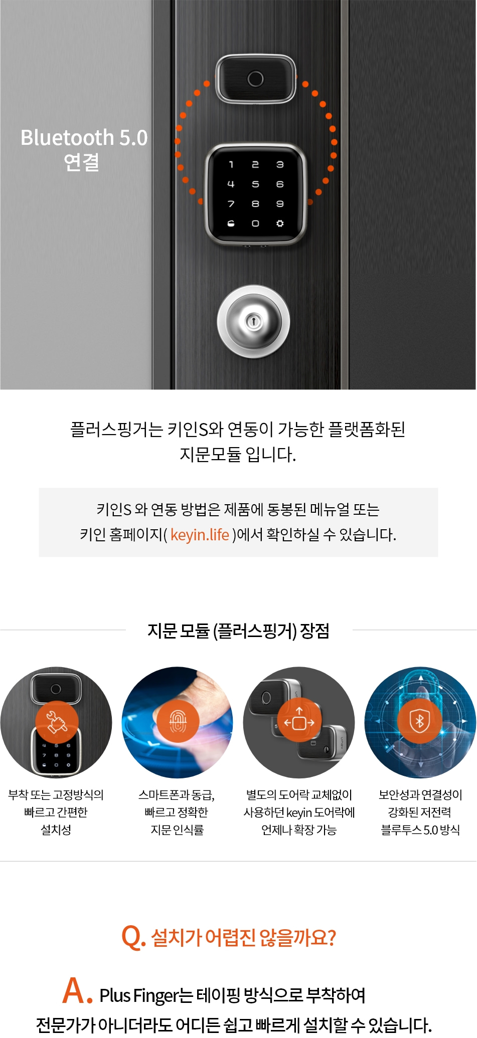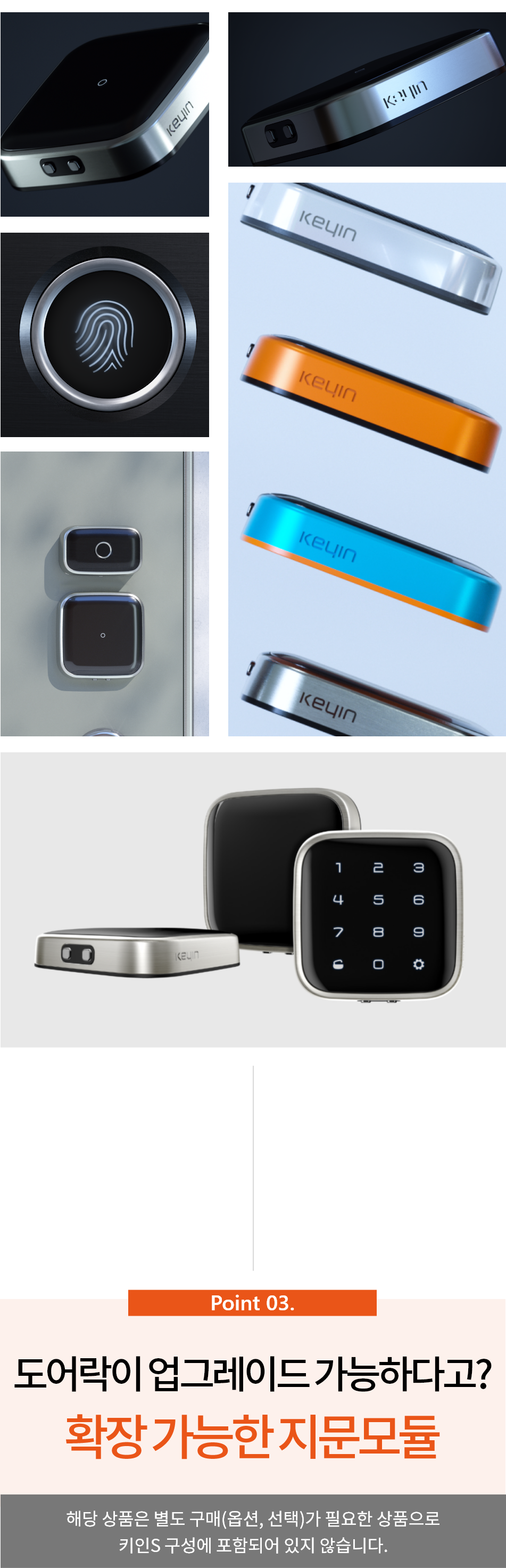 Keyin S 도어록은 지문, 비밀번호, 앱 기능과 비상 키를 통해 안전한 접근을 제공합니다. 세련되고 내구성이 뛰어난 디자인은 어떤 환경에도 잘 어울립니다.